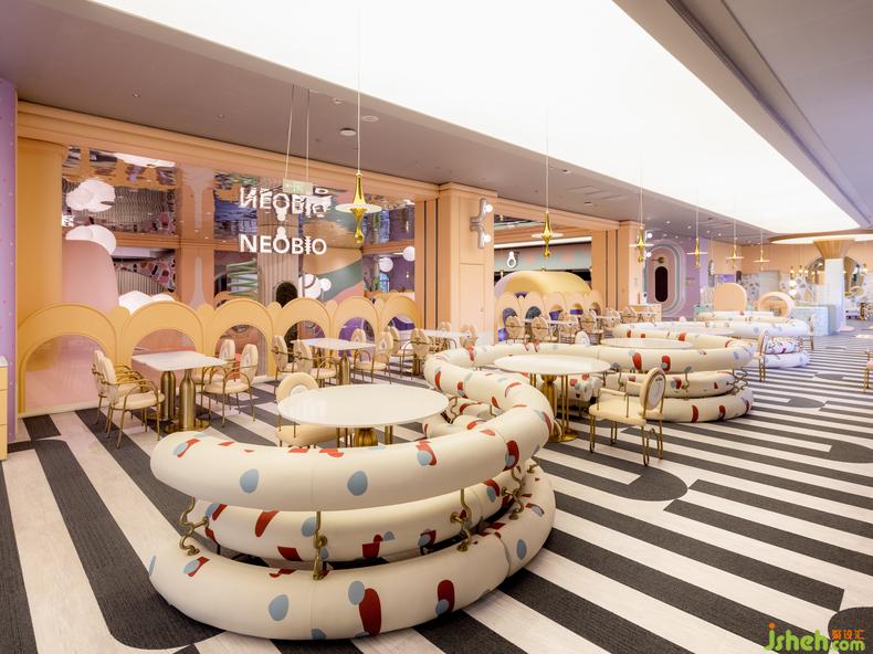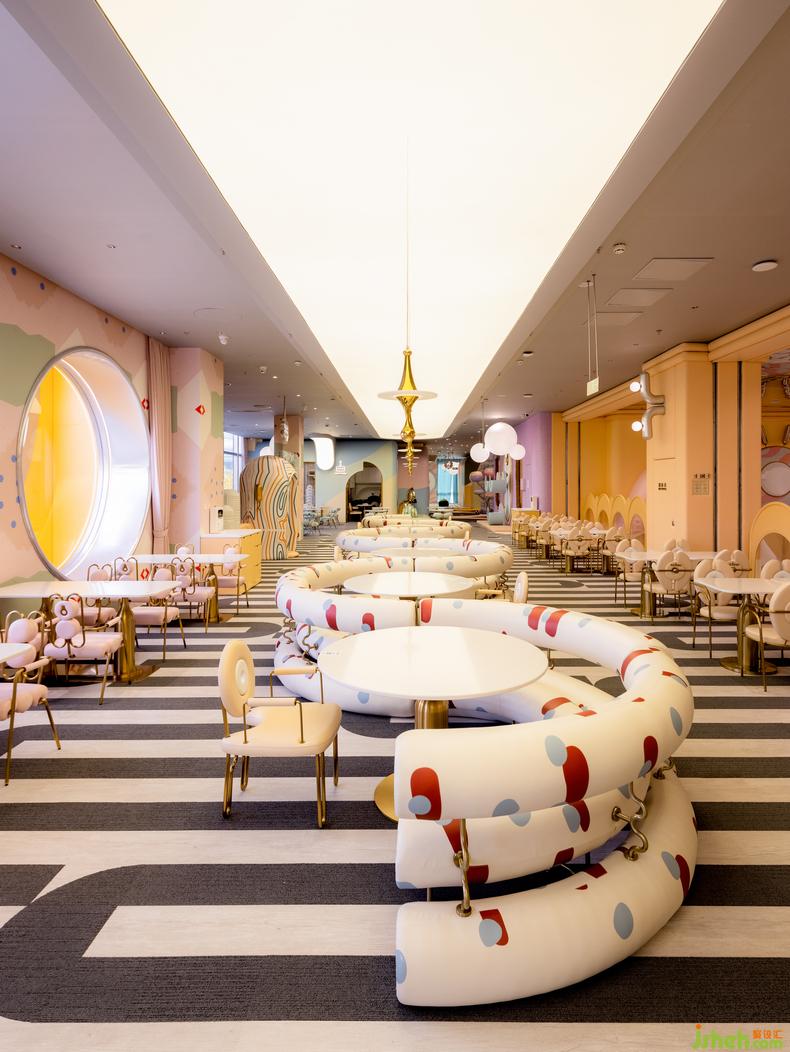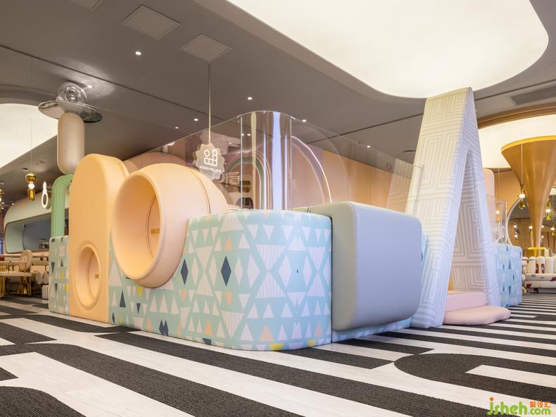 自由動(dòng)線串聯(lián)的空間序列中,多維度視角的關(guān)注點(diǎn)落在個(gè)體的人。兒童樂園設(shè)計(jì)記憶的灰度注入低飽和、弱對(duì)比的用色方案,吸納自然的溫暖肌理。照明亦多以白色燈膜貼近自然光的方式營(yíng)造大面積漫反射的舒適光環(huán)境。