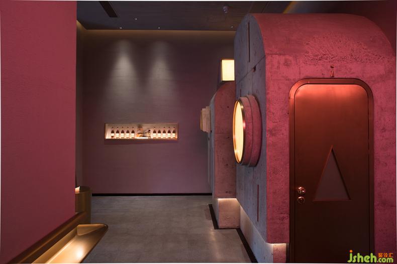 回頭觀望,主體玄關的建筑造型,酒吧設計讓我們回憶起構造相似的入口處的洗手間,由荒漠到眼前這精致的玄關,一段十幾秒的時間卻產生瞬間的回憶,兩者間巨大的溫差,讓這段回憶變得深刻且苦澀.