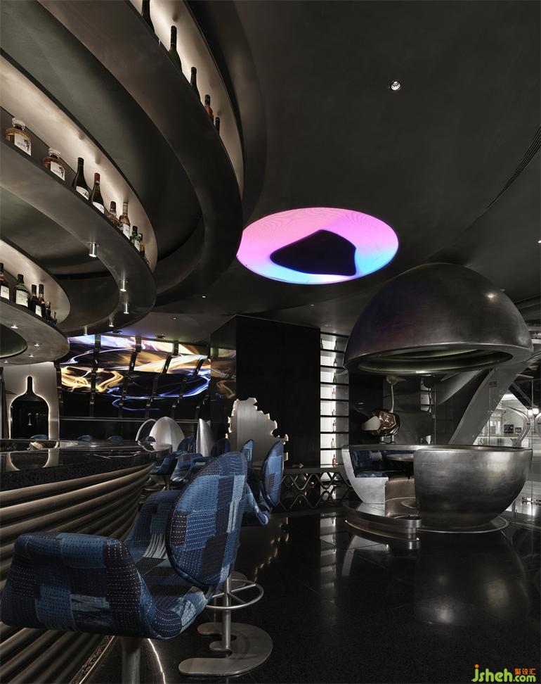 人類掌握了火,從此與動(dòng)物分別開來(lái),開啟物種進(jìn)化的起源。LED在金屬和崗石的承托下成為空間的主角,粒子依循AI智能參數(shù)的命令而跑動(dòng),形成煙火彌漫的虛擬環(huán)境。這種由細(xì)微的物質(zhì)所構(gòu)成切割錯(cuò)置的戲劇感,成都居酒屋設(shè)計(jì)又呼應(yīng)將抽象情緒心理變成可見可感具象符號(hào)的國(guó)粹藝術(shù)——川劇變臉,與之形成頗具浪漫主義意味的一次現(xiàn)實(shí)致敬。
