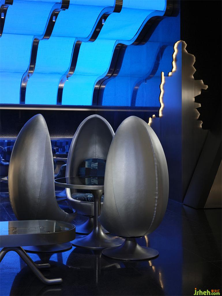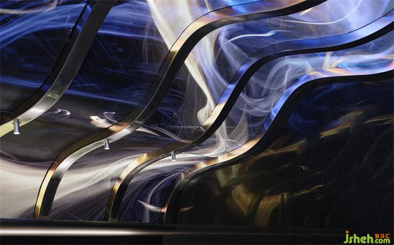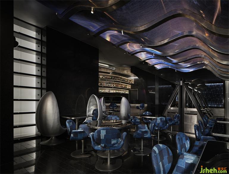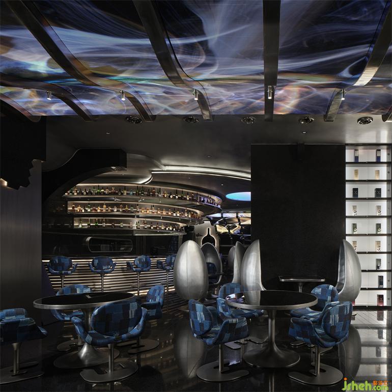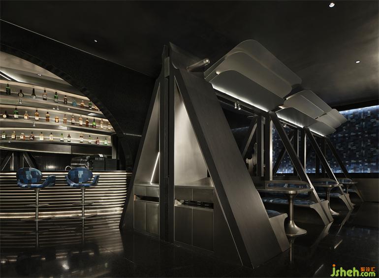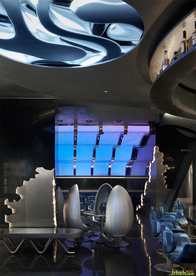 出于降低成本和環(huán)保的考慮,成都居酒屋設(shè)計師選擇以小塊的方形LED屏幕取代原計劃大面積的曲面LED屏幕,化整為零地拼合出曲面的效果,雖然留有一些細微的拼接縫隙,但在多媒體藝術(shù)家“電子煙火”的屏幕視覺加持下,這個缺陷終被完美地消解,在成本、功能與美學(xué)之間實現(xiàn)最優(yōu)解。