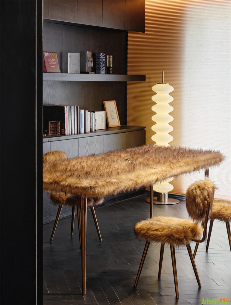 另有一間覆蓋著滿滿人造絨的“毛毛屋”,那是李文強的個人辦公室。“毛”的靈感源自一只貓。“它叫阿橘,2017年來到我們工作室,被我養(yǎng)得很胖,所以工作室取名PIG,之后才有了‘用可愛拯救城市’,辦公室設計讓建筑空間因為有趣的設計能夠被人喜愛”。