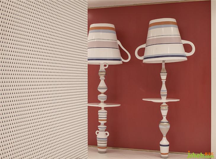 二層的餐飲層作為辦公層的服務(wù)空間,我們把大部分的空間留給了商戶,把設(shè)計點(diǎn)主要放在了走廊的端頭墻面,利用彩色的背景墻面和一些餐飲相關(guān)的趣味家具和裝置在視覺上吸引人們的眼球,同時起到和人們互動的作用。這些家具除了視覺上的吸引,同時也是餐飲層的共享桌椅和休息空間。
