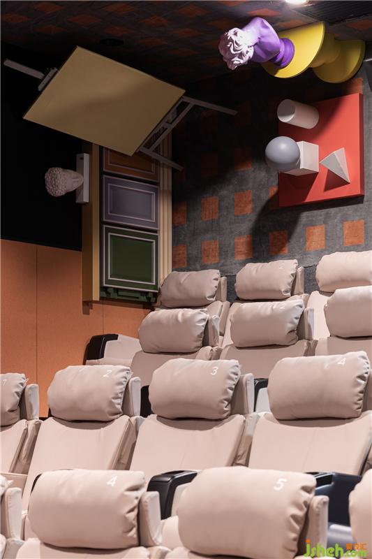 不論主題影廳或是私人包廂,設(shè)計(jì)師并未忽視聲學(xué)環(huán)境的特定要求。場(chǎng)內(nèi)壁布和墻面吊頂均使用了吸音裝置,個(gè)性化地毯有效減少噪音。舒適座椅結(jié)合視線高值差與視點(diǎn)高度,保證高質(zhì)量的聽覺與視覺享受,提升觀眾的沉浸式觀影體驗(yàn)。電影院設(shè)計(jì)