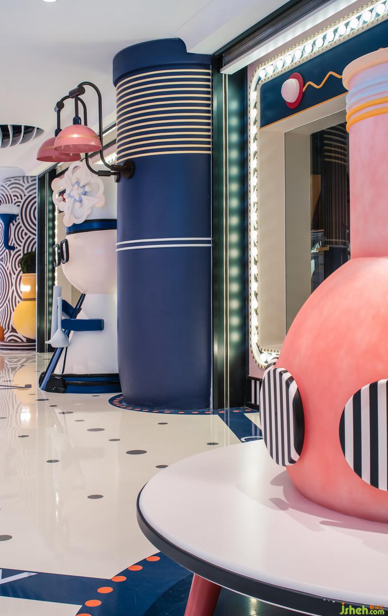 除了2、3層的兒童主題公區(qū)改造,設(shè)計(jì)師還應(yīng)甲方的需求將室外露臺(tái)區(qū)打造成了整個(gè)商場(chǎng)的最浪漫打卡地點(diǎn)。室內(nèi)設(shè)計(jì)師目標(biāo)人群從低齡兒童層,拓展到了年輕群體,粉紅摩天輪為空間中亟待發(fā)生的浪漫故事作了鋪墊