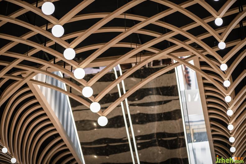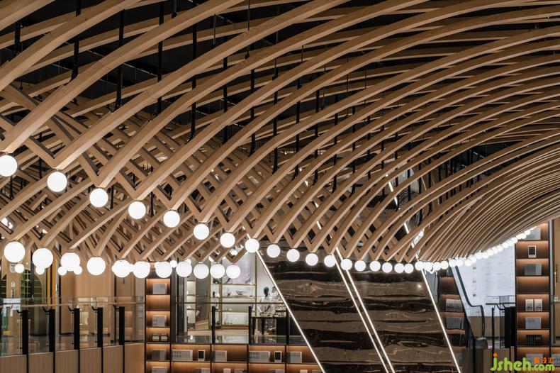 陣列式的拱狀吊頂裝飾,如同自然生長的枝椏,為整個空間鋪陳悠閑愜意的氛圍質地。規(guī)律排列的布局又使得空間如同藝術館般,極具視覺張力與觀賞性。