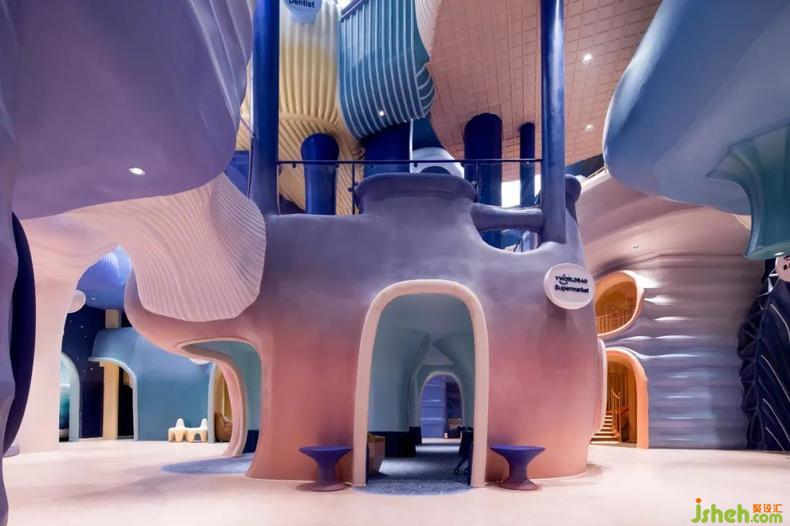 應(yīng)原創(chuàng)親子文化娛樂(lè)品牌“優(yōu)我寶”的委托,唯想國(guó)際將一座老舊廠房煥新改造為大型兒童藝術(shù)美學(xué)樂(lè)園。廠房?jī)?yōu)越的室內(nèi)層高與新品牌的初生引發(fā)了設(shè)計(jì)師的想象,一片無(wú)限閃動(dòng)的藍(lán)色海洋從潛意識(shí)里浮現(xiàn)。