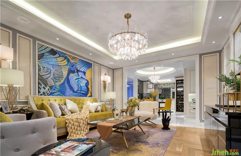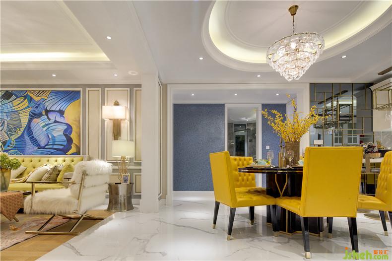淺色系帶來明媚輕快的空間氛圍,黃與藍碰撞對比,客餐廳錯落有致的陳設(shè)細節(jié),富有創(chuàng)造力的藝術(shù)飾品貫穿其中,華美水晶燈投射的旖旎光影,帶來視覺虛實的想象,將精致細膩的質(zhì)感表現(xiàn)延伸至各個空間。