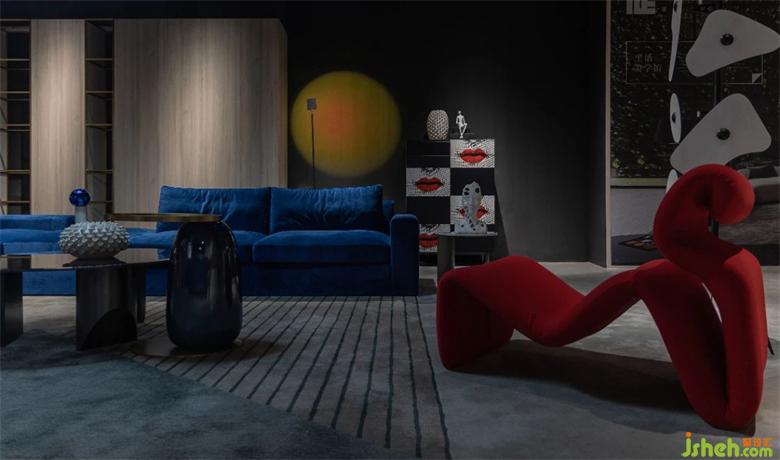 沉浸下來(lái),體驗(yàn)屬于這個(gè)空間的感受,自古紅藍(lán)出CP,這一抹純粹的藍(lán)色,像薄暮時(shí)的天空,幽邃的湖心,靜謐平和,具有強(qiáng)大的包容力,經(jīng)典藍(lán)搭配空間的中國(guó)紅,家具展廳設(shè)計(jì)給客戶帶來(lái)更多組合體驗(yàn)的搭配想象力。材質(zhì)、工藝、圖案、紋理、燈光,每一個(gè)細(xì)節(jié)都不爭(zhēng)不搶卻透露著自然的高級(jí)感,這是產(chǎn)品所堅(jiān)持的精神所在。