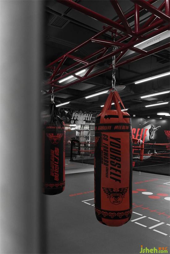 一排沙袋整齊的掛在桁架上,過去的認(rèn)知已成為固化的印象,如今正在探索的將重構(gòu)想象,拳擊館設(shè)計視覺上感受著運(yùn)動的對抗,充滿了引力的可能性,正在這個角逐場上一一演繹。