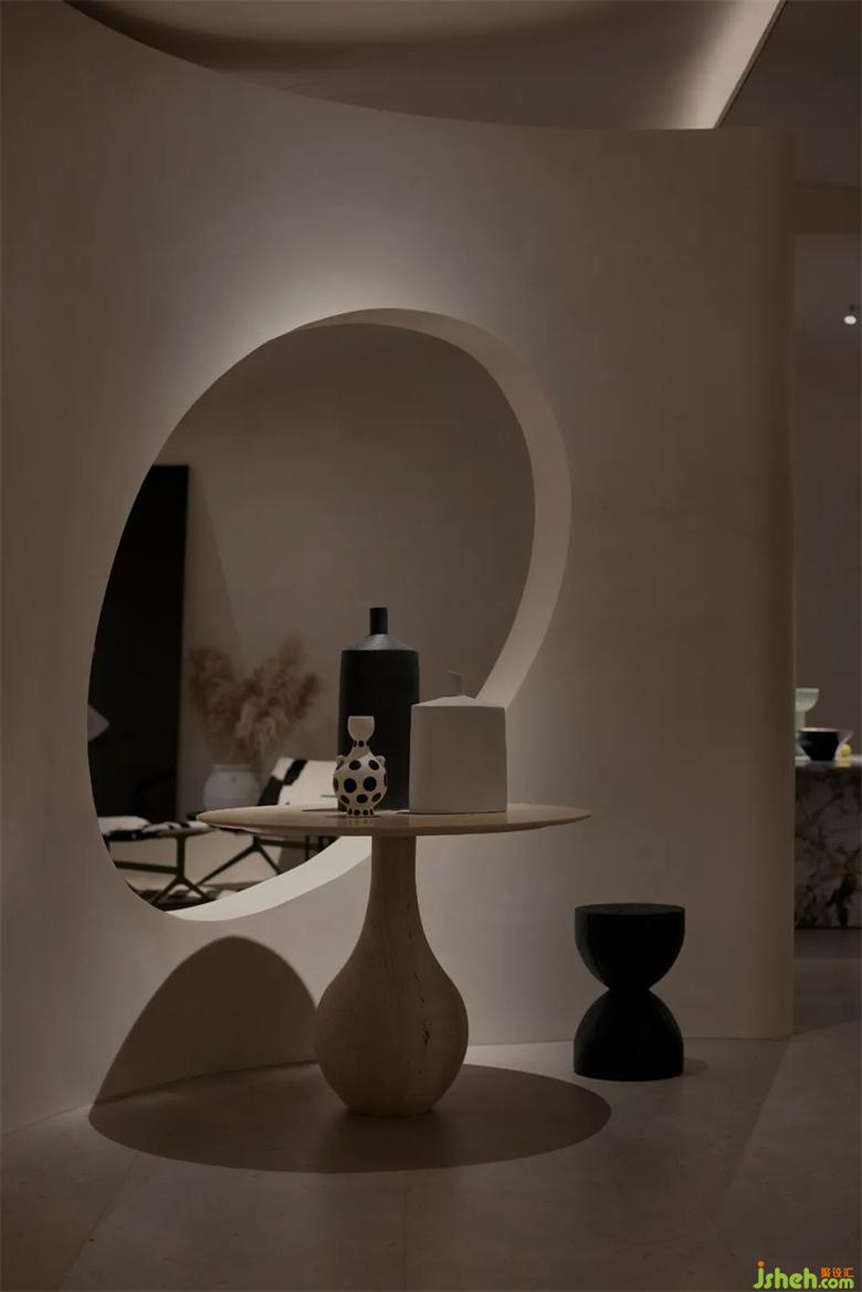 LA.Concept整個(gè)展廳分為兩部分,前廳為”Living”展出精致生活感的意式輕奢類家具,后場(chǎng)為”Art”也是甲方委托我們?cè)O(shè)計(jì)的區(qū)域。