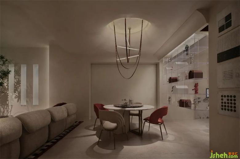 我們致力于尋找現(xiàn)代美學(xué)與復(fù)古設(shè)計(jì)之間的完美平衡,家居館設(shè)計(jì)空間中將融入更多元的思考和元素。每一個(gè)空間都將講述一個(gè)故事,第一個(gè)故事,生活在Z時(shí)代的時(shí)尚小夫妻,一個(gè)不再擁有全民樣板的世代,喜歡具有時(shí)尚感的單品,展廳設(shè)計(jì)埃及艷后紅低調(diào)而性感,餐廳背后的亞克力架子上陳列著時(shí)尚潮玩,家居館設(shè)計(jì)都彰顯著TA們對(duì)理想生活的期待沒有一個(gè)標(biāo)準(zhǔn)答案。正如我們的空間一個(gè),這是一個(gè)具有包容性、可變性的家具展廳。