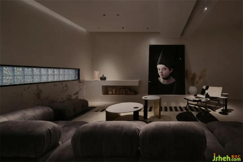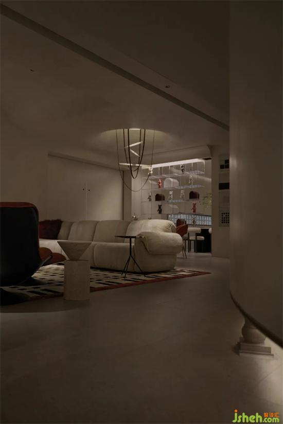 為了讓客人穿過前廳后能對后場區(qū)域繼續(xù)保持新鮮感,我們在Living和Art展廳區(qū)域交界處創(chuàng)作了一個裝置性的藝術通道,人們會被這個內建筑所吸引,具有吸引力的弧形墻體能讓展廳瞬間轉換空間情緒,神秘感油然而生,一步一步打開客人的好奇心,家居館設計后場濃郁的藝術氛圍會讓人心情愉悅,浪漫感油然而生。