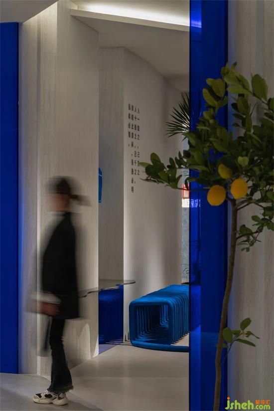 店里整體灰色的色調(diào)給人低調(diào)、穩(wěn)重的感覺(jué),配以克萊因藍(lán)的搭配,展廳設(shè)計(jì)讓原本鋼韌的空間增添了活力,給予了生命。從色彩搭配中來(lái)詮釋百能的品牌理念:滴水穿石,亦柔亦剛。增強(qiáng)產(chǎn)品與客戶之間的黏結(jié)度,呈現(xiàn)極具藝術(shù)性的空間感官??臻g展示的新美學(xué)為裝飾和設(shè)計(jì)提供了卓越的潛力,體現(xiàn)了強(qiáng)大的視覺(jué)質(zhì)感,創(chuàng)造了充滿活力的現(xiàn)代感,同時(shí)也喚起了溫暖、富裕、力量和情感。