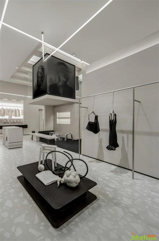 低調(diào)隱蔽的入口設計,與摩登時尚的玻璃盒子碰撞,側(cè)面的LED屏放映著表達品牌主張的宣傳視頻,旗艦店設計張揚的畫面、動感的旋律,在矩陣縱橫的空間構(gòu)成中,從精神上釋放了女性的含蓄與內(nèi)斂。