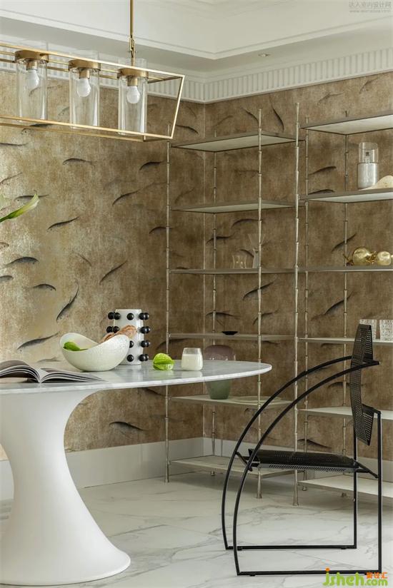 高掛的Art deco風(fēng)燈具、竹節(jié)元素的餐架、意式中古的設(shè)計(jì)師椅、浪漫風(fēng)情的花朵椅,這全都展示著「與藝術(shù)共居」的優(yōu)雅詩(shī)意。當(dāng)音樂(lè)響起,品著咖啡,心儀的書籍,家裝設(shè)計(jì)翻開上次勾留的位置,享受著生活的溫暖與優(yōu)雅。
