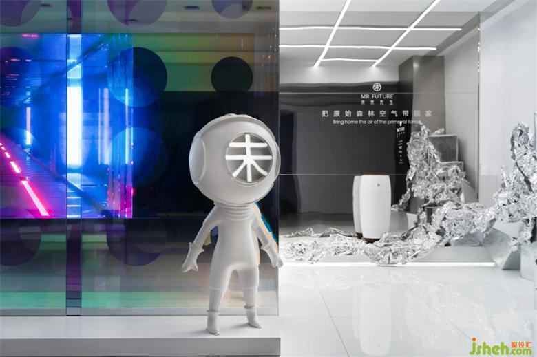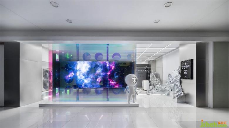 入內(nèi)作為一個流動的展示空間,展廳設計團隊通過對空間邏輯的思考,在有限的空間尺度里探索出更多的可能性,就功能性進行布局把空間劃分成前臺,產(chǎn)品展示區(qū),及接待區(qū)等幾個主要區(qū)域,漫步其中似乎是走進了宇宙,走進了每個星球...