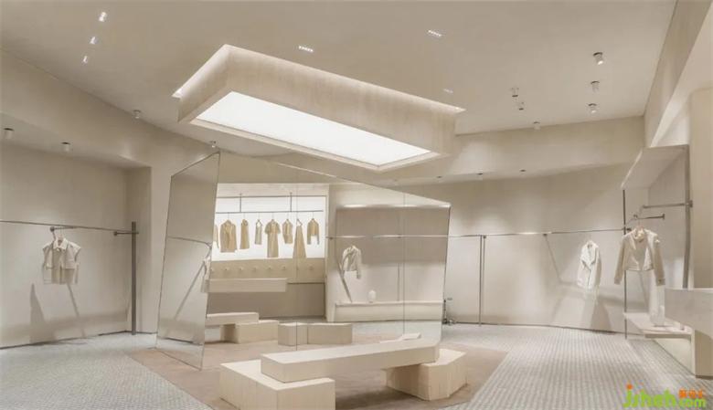 130m2的空間即使是對其做了獨(dú)特的量體裁衣,依然難以表達(dá) LEDIM WANG 其獨(dú)特與時(shí)尚的無限可能性,設(shè)計(jì)團(tuán)隊(duì)利用鏡面包裹位于中心的內(nèi)建筑體,店鋪設(shè)計(jì)模糊了人眼視覺的邊界感,鏡中映射出的虛幻世界與外界的現(xiàn)實(shí)相互融合,在有限空間內(nèi)創(chuàng)造出無限的視覺張力。