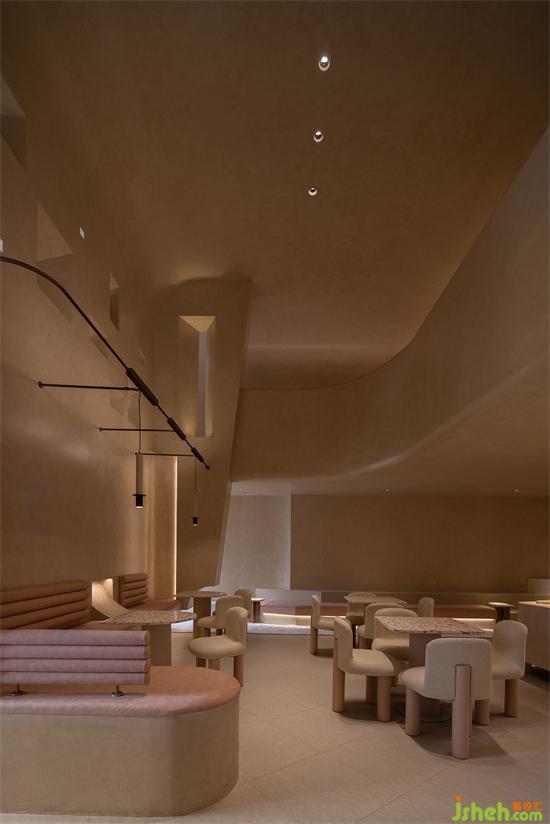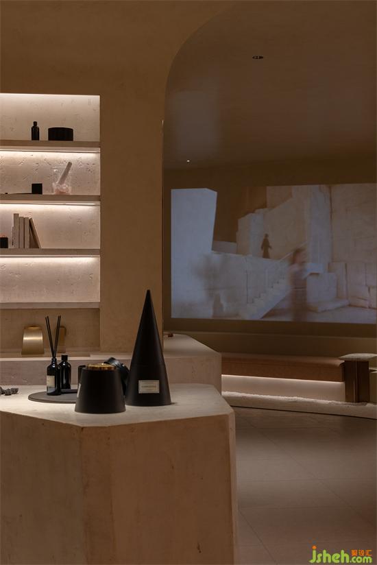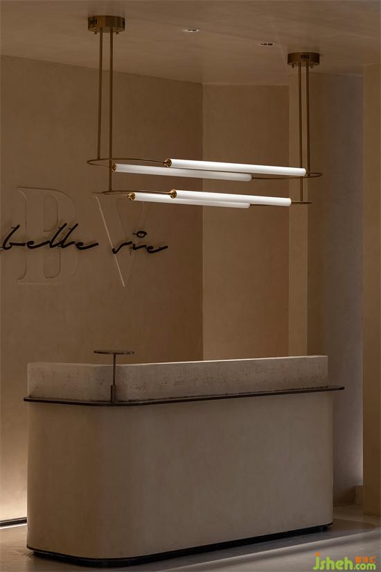 空間中的弧線,切掉了棱角,構(gòu)建出自然意味的建筑感。也收斂起精明與尖銳,似乎一旦進(jìn)入,不管對美好生活有多少不被理解的執(zhí)念,都將被溫潤又莊重的接納或是尊重。會所設(shè)計看似簡單的線面與幾何體塊的組合中,有著太多的場面,被工匠們一筆筆刷出來的“原生感石柱”,幾可亂真的效果,采用了仿洞石涂料,調(diào)和自意大利進(jìn)口的原石粉末。
