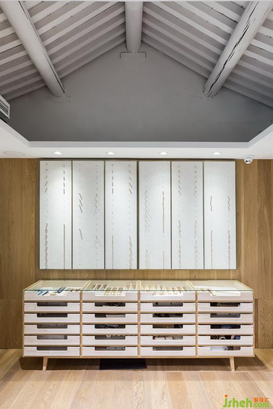 燈光透過玻璃打在最上層抽屜里的扇子上,顯得扇子更加具有質(zhì)感