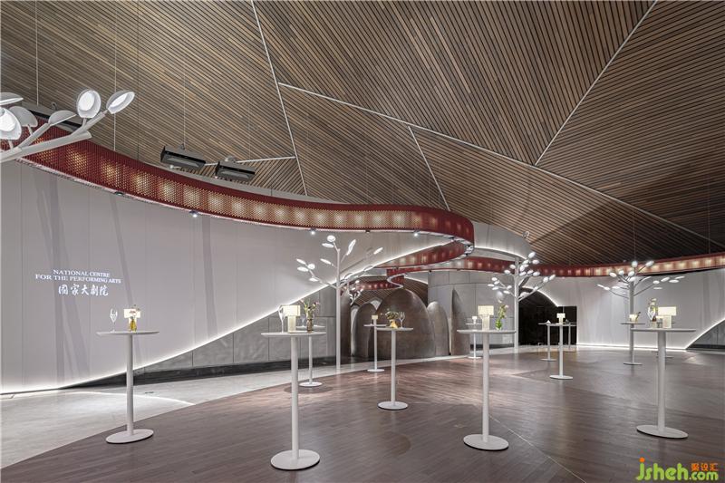 作為中國(guó)最高藝術(shù)殿堂的國(guó)家大劇院,上演著大大小小不同類別的演出,古魯奇設(shè)計(jì)團(tuán)隊(duì)創(chuàng)意概念來自舞蹈藝術(shù)提煉而成的“飄帶”作為給予空間新的視覺元素。飄帶也有著另一層意義,就像是一縷黃絲帶,讓它以自然的型態(tài)飄落在空間當(dāng)中,紀(jì)念這位偉大的已故建筑師保羅·安德魯。