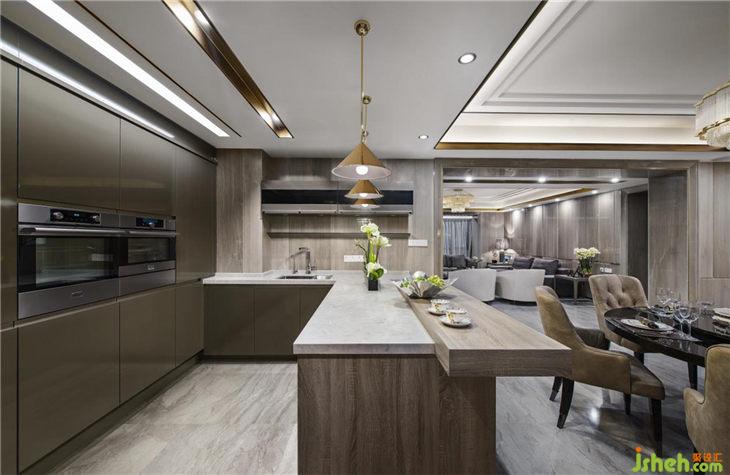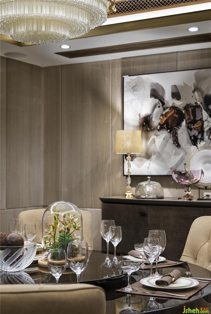 餐廳同樣延續(xù)客廳空間的顏色基調(diào),營(yíng)造出貴族式的冷靜。如果說,港式輕奢是一種生活氣質(zhì),那么在這里,輕奢的表達(dá)更多見于顏色的冷處理之上。