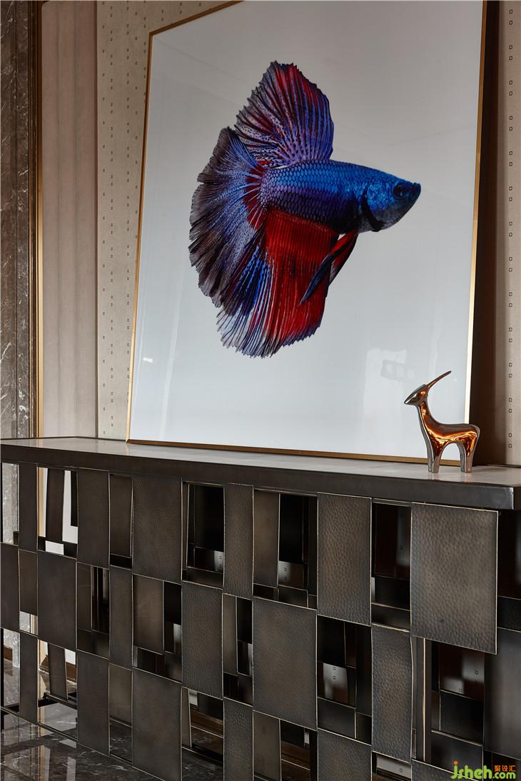為了讓軟硬裝和諧統(tǒng)一,本案設(shè)計(jì)師李迅先生,在硬裝空間的塑造階段,非常關(guān)注造型細(xì)節(jié)的設(shè)計(jì),與后期家具調(diào)性和材質(zhì)的呼應(yīng)。精選在視覺(jué)和觸感上,與家具設(shè)計(jì)元素,銜接性強(qiáng)的珍貴木材,并創(chuàng)造性地運(yùn)用真絲、亞麻、羊絨等珍貴面料,和黃銅等貴重金屬飾條,搭配質(zhì)感晶潤(rùn)的大理石、進(jìn)口磚等材質(zhì),升華空間的精致度,使軟硬裝完美融合,互相成就,將整個(gè)空間塑造成集奢華與高質(zhì)感于一體的藝術(shù)品。