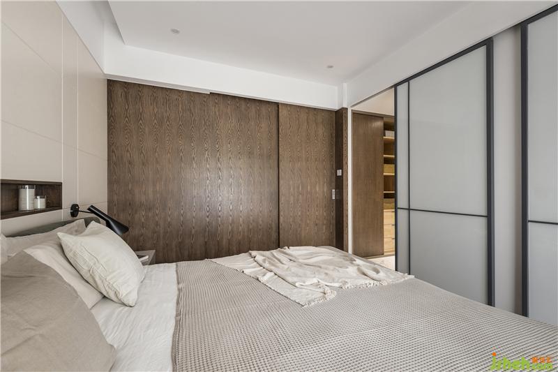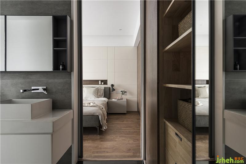 通往更衣間的白膜玻璃移門,裝修設(shè)計凸顯細(xì)節(jié)比例,點(diǎn)綴出空間的品味韻律。