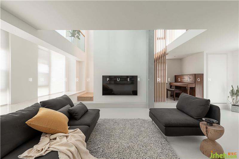 電視墻延伸至2F,呈現(xiàn)輕盈、通透的空間體驗感。