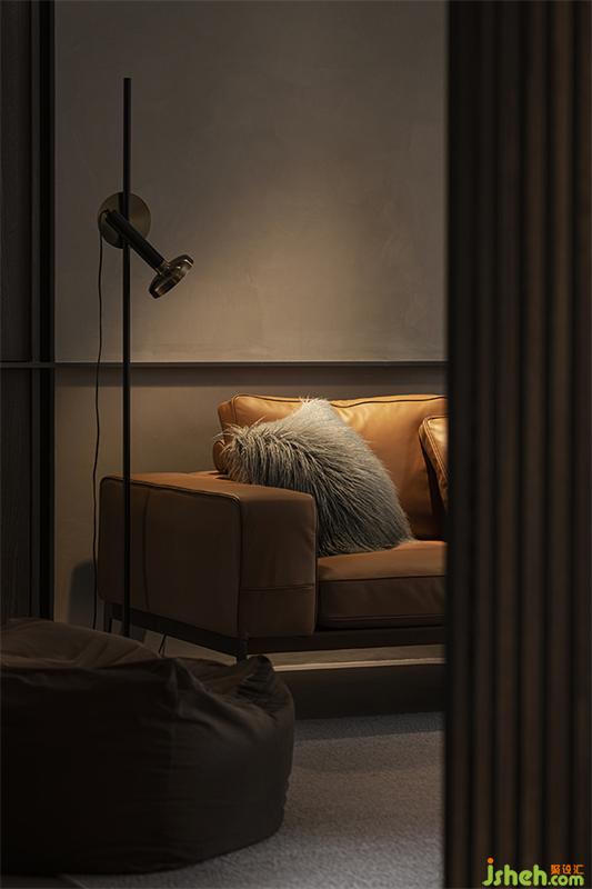 家居設(shè)計中各種點光源重點照明局部,透過格柵帶來光影變化,在空間形成明暗對比,營造出柔和溫暖的氛圍感和儀式感,橘色沙發(fā)、燭光、音樂、美酒,盡情釋放對生活的熱愛。