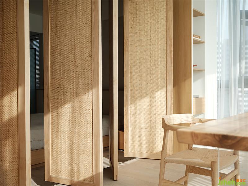 給喜靜的男業(yè)主一間獨(dú)立的書房用來(lái)辦公和冥想,簡(jiǎn)單到僅有:榻榻米、書桌、座椅,以及一片與書桌相連可以放書的木臺(tái),與其說(shuō)木百葉掌控著室內(nèi)的明暗,不如說(shuō)是他可以更游刃有余地與自我相處。