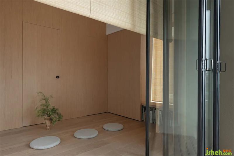 再延伸至露臺(tái),一間半開放的茶室,與露臺(tái)連接出室內(nèi)外的空間體驗(yàn),這里便是以待客為主的中心。愜意的午后,陽光作伴,邀上三兩好友,聊天喝茶,靜靜享受當(dāng)下的美好。