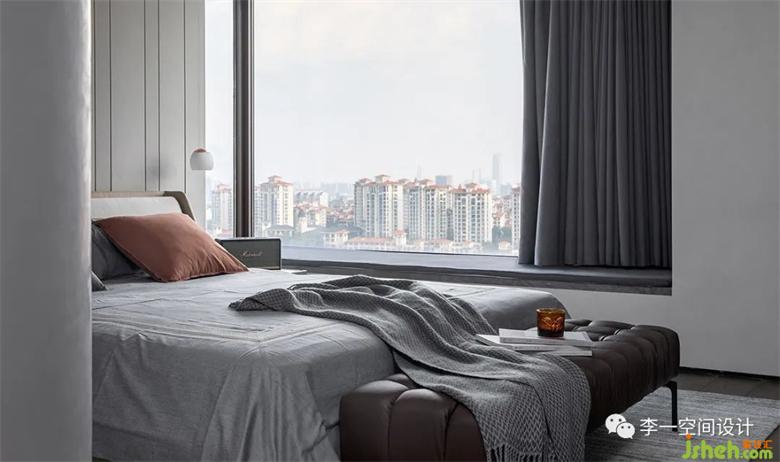 日升而起,日落而息,用橫軸劃分的左右分區(qū),將東面全部給了生活。盡最大尺度的飄窗臺給了主臥觀景的同時又保證了起居行為上的品質(zhì);進口床與床品建立了高品質(zhì)睡眠的裝修設(shè)計保障,充足的衣帽與收納給了一個干凈的家,溫暖的燈光緩亮,身躺森林系環(huán)境下的浴缸,這是一天完美的句號。