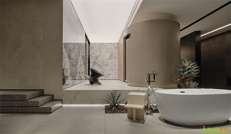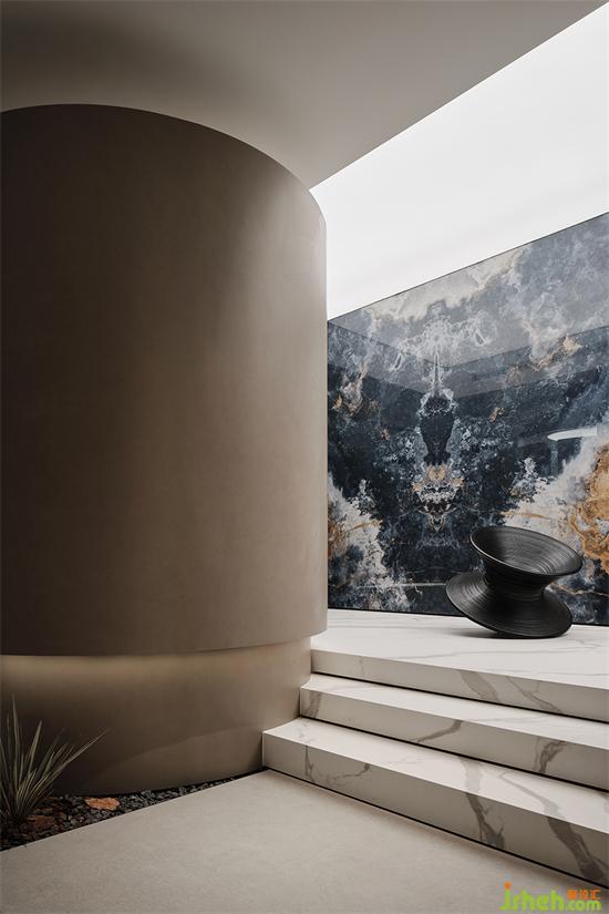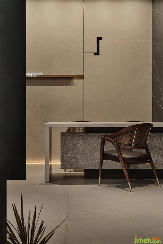 柔和的弧形為原展廳設(shè)計(jì)本冷硬的巖板