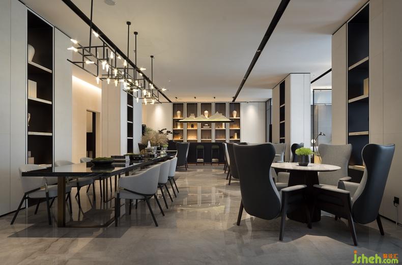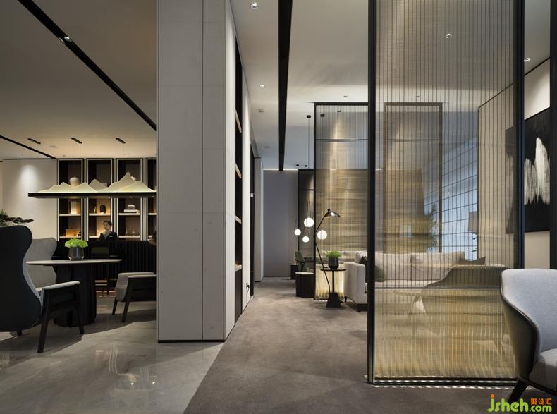 鏤空的屏風(fēng)為空間增添了一絲設(shè)計(jì)感,黑色木飾面、白色石材與現(xiàn)代金屬的碰撞,彰顯低奢雅致的韻味。
