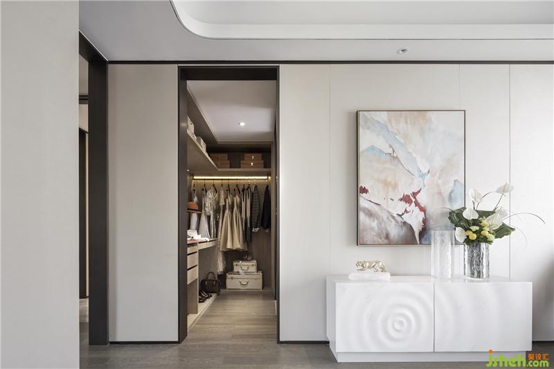 主臥套房內(nèi)設(shè)起居室、衣帽間、書房和主衛(wèi),各功能區(qū)呈遞進(jìn)式布局。在氛圍上,營造時(shí)尚而不浮躁,典雅卻不乏浪漫的感覺。