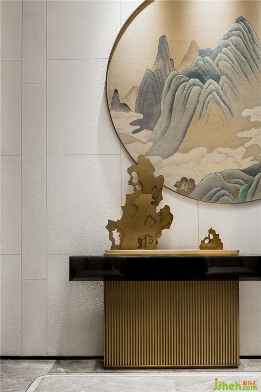國人崇玉,所謂“玉不琢,不成器。”玉器的制作要經(jīng)過刻、碾、琢、磨、鉆等多道工序,就如同我們對待居住空間一樣,經(jīng)過了不斷的否定,推敲到確定。因此該項(xiàng)目的公共空間的設(shè)計(jì)靈感來自于“玉”,主要從玉的品質(zhì)及器型的處理上入手并進(jìn)行延伸,為空間提取了玉的弧線及它的溫潤與高貴。