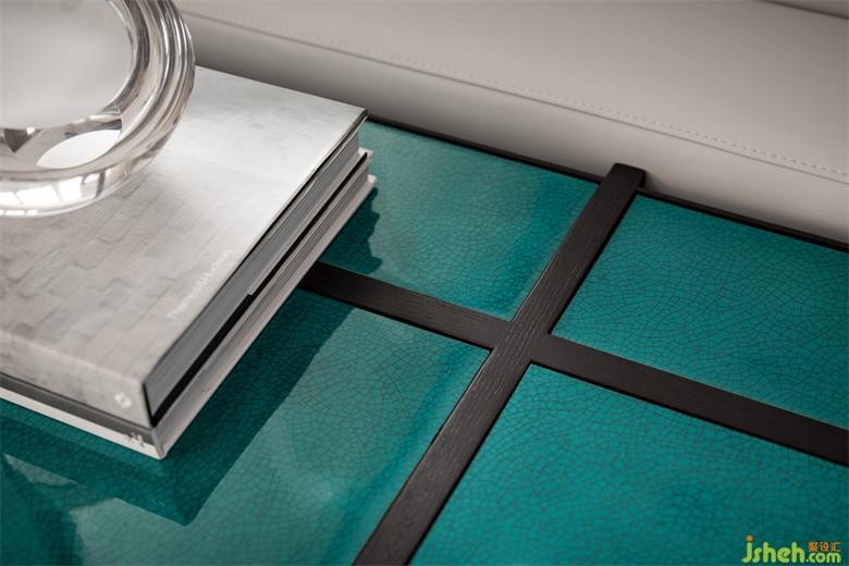 當(dāng)代藝術(shù)品更多地在追求造型的簡(jiǎn)化,轉(zhuǎn)而注重向內(nèi)的思考。由2800片陶瓷片構(gòu)成的水吧臺(tái)背景墻,吸取了琉璃的部分制作工藝,經(jīng)歷成型、素?zé)?、施釉、釉燒終成絢麗效果。
