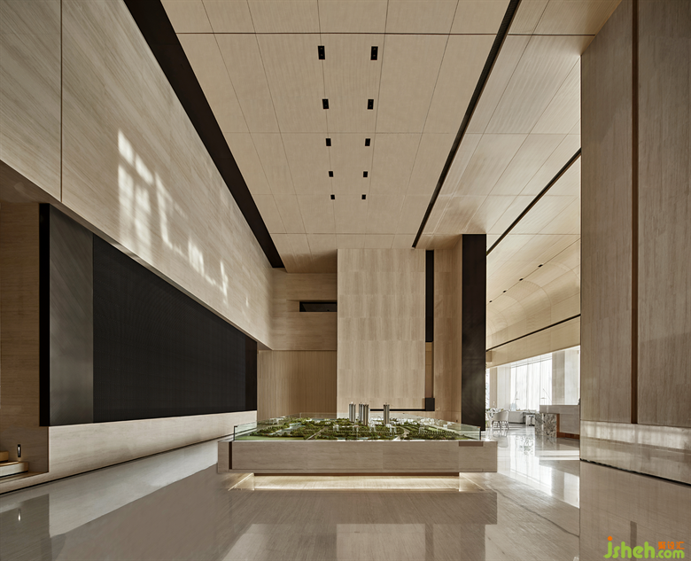 售樓處設(shè)計(jì)師以各種精巧的細(xì)節(jié)來消解大尺度空間帶來的距離感,并在材料的質(zhì)感和色彩上注入溫度,交織出一個(gè)與人親近,簡(jiǎn)潔純粹的公共空間。