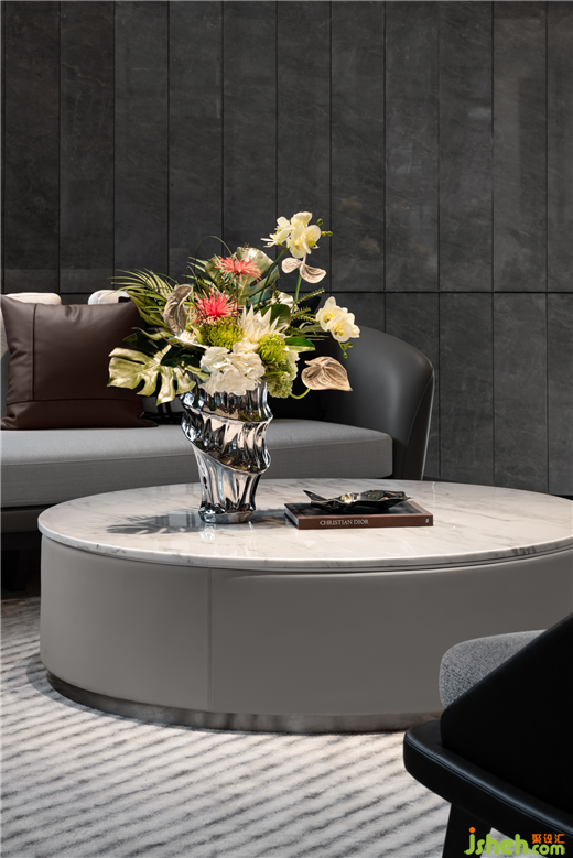 營銷中心設計陳設在場景細分上做精細化考量,用不同類型的家具組合,區(qū)分出共享辦公場所和閱覽區(qū)。臨窗落座,柔光之下,捧上一本好書,消磨一段好時光。