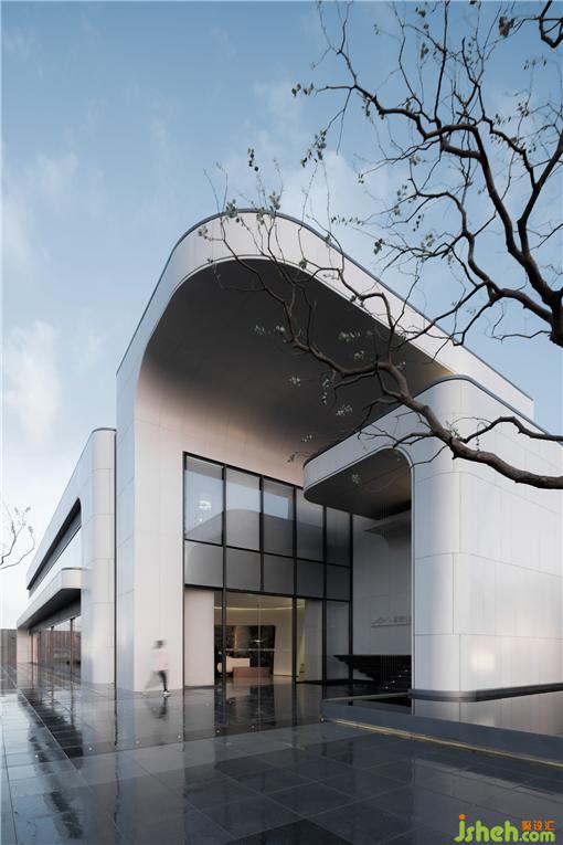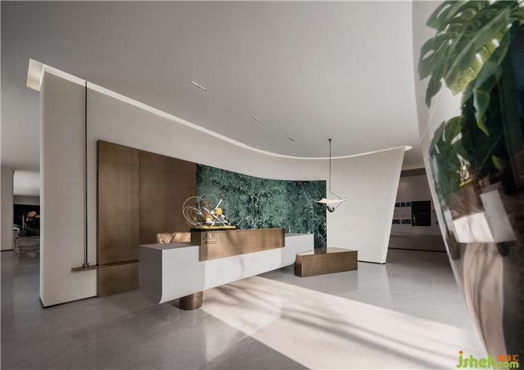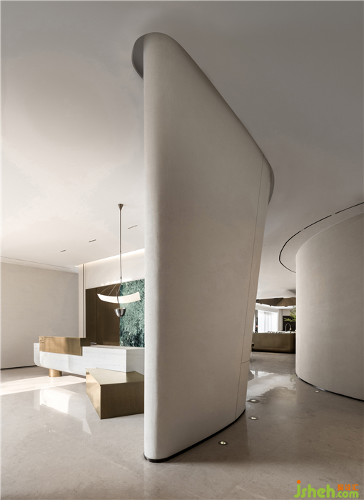 售樓中心設計空間的結構與立面與建筑型體相互呼應,其中建筑設計中的弧形線條設計語匯延展至室內。