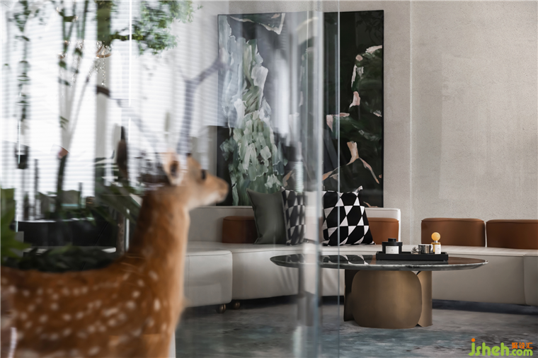 一棵綠色的樹(shù)長(zhǎng)在室內(nèi)成為耀眼的存在,它強(qiáng)化了空間以自然為核心的主題,售樓中心設(shè)計(jì)給環(huán)境帶來(lái)了生機(jī)。