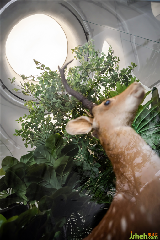 多功能空間與VIP室的過(guò)渡區(qū),添置了一處森林景觀區(qū),我們通過(guò)人為的天光的營(yíng)造把景觀區(qū)作為一個(gè)吸睛的設(shè)計(jì)點(diǎn),售樓中心設(shè)計(jì)將情境主題推到一個(gè)高點(diǎn)。