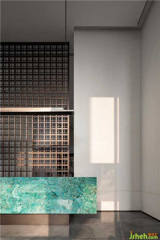 接待廳,我們特意尋覓了孔雀藍(lán)色彩的奢石,營(yíng)銷中心設(shè)計(jì)精細(xì)打磨圍合出一方細(xì)膩且高雅的接待臺(tái),形成視覺的第一會(huì)面空間。