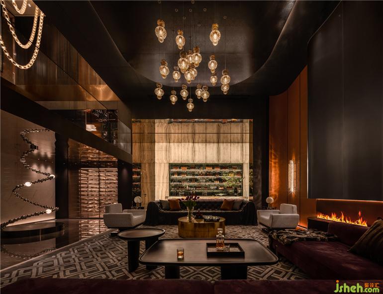 中海寰宇天下會(huì)館設(shè)計(jì)由幾百個(gè)水晶模塊組成的枝形吊燈,這些水晶模塊圍繞著一個(gè)包含LED照明系統(tǒng)的不銹鋼骨架。