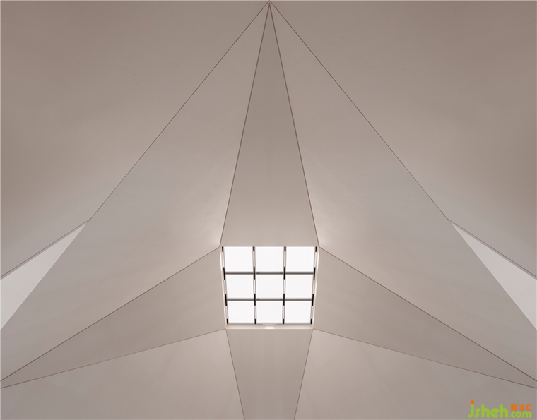 形態(tài)間的成角對比,光的結(jié)合,擁有雄渾的力量美與流動的氣韻,組建出一個典雅與力量并存的空間。