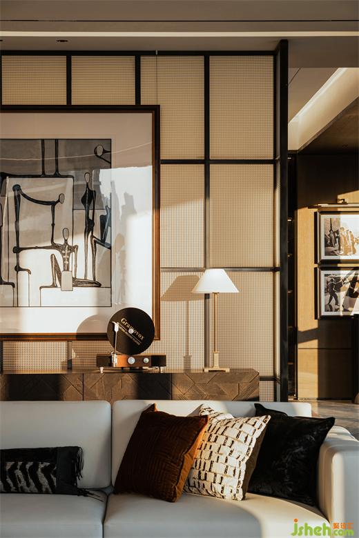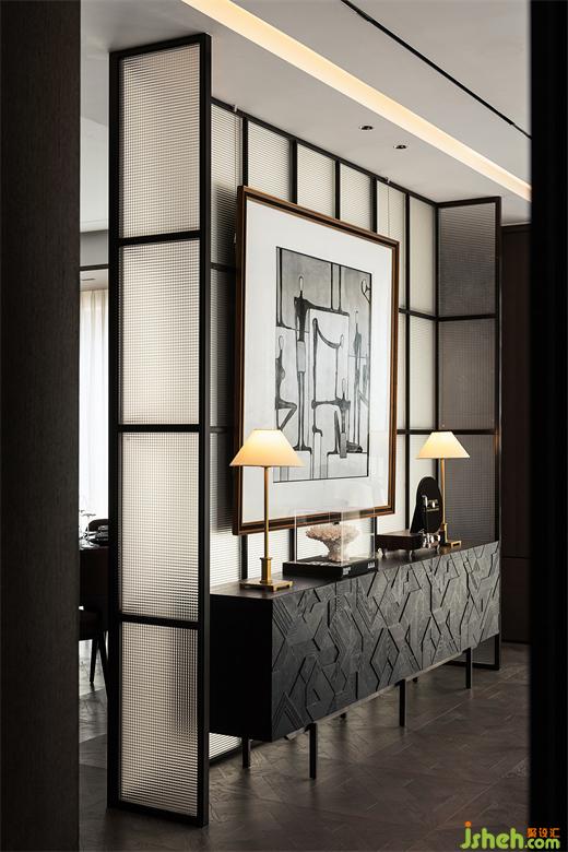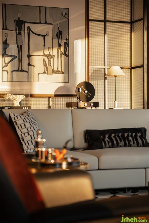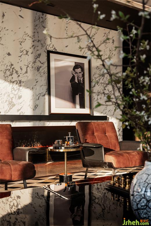家具選型與陳列方式以專業(yè)會所的形式呈現(xiàn),室內(nèi)的時尚品位、藝術(shù)美學體現(xiàn)在掛畫、燈飾、家具等各類器物的選擇上。