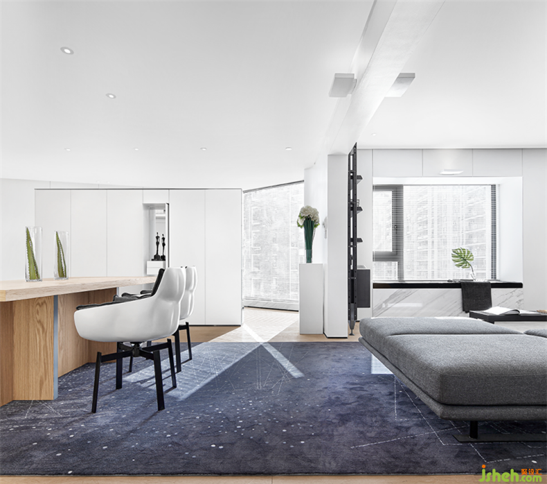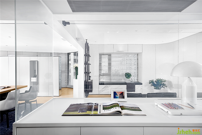 書桌前的玻璃也很有考究,可以在透明和非透明之間自由切換,裝修設(shè)計(jì)實(shí)用的同時(shí)保障了私密性。