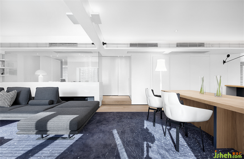 沙發(fā)下是一塊帶有銀河光輝的地毯,一直從客廳延伸到餐廳。坐在沙發(fā)上就好像踏步在璀璨的星河中,大大地滿足了小孩子的好奇心和探索欲。裝修設(shè)計(jì)
