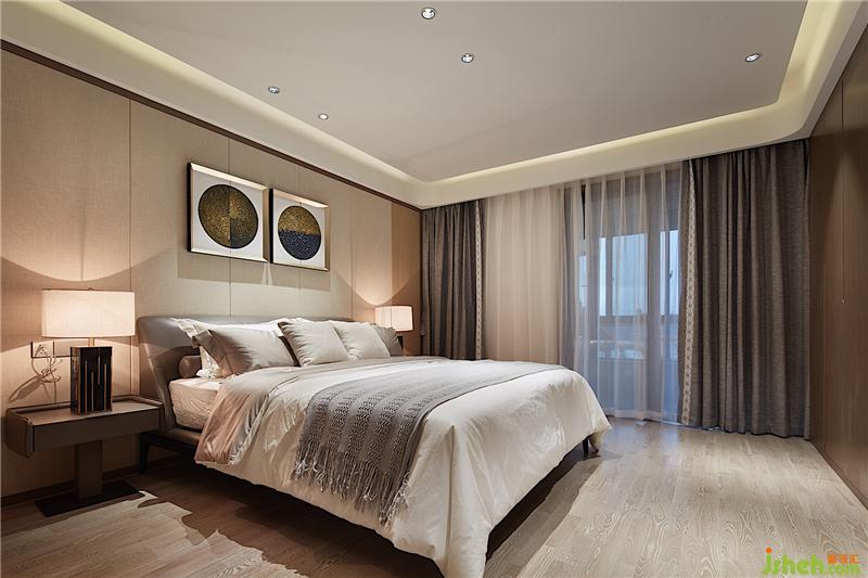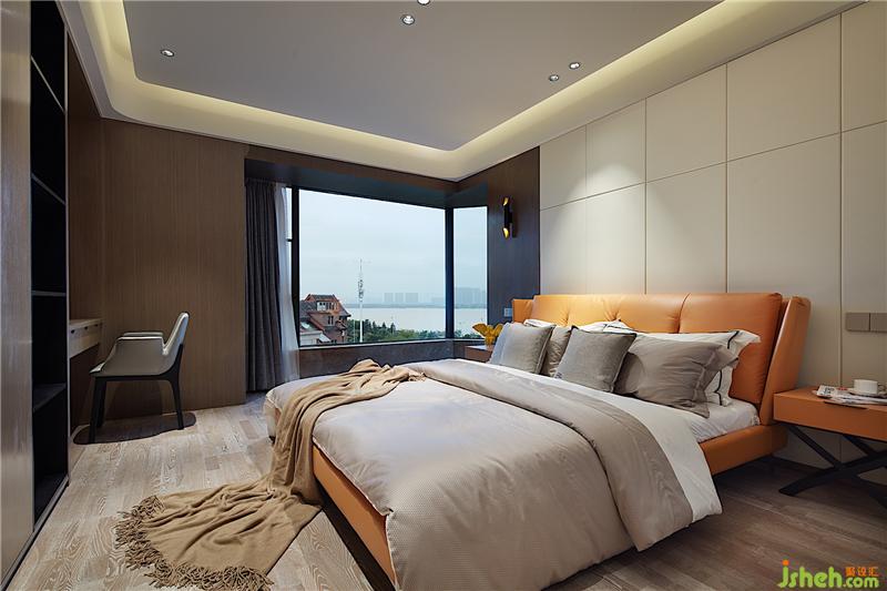 主臥看似和客廳相似,使用的材料卻全然不同??蛷d大部分以石材為主,而主臥則是采用麻布硬包,手感柔軟細膩。設計師通過使用材料不同,強烈對比出兩個功能區(qū)的柔和與剛硬,體現(xiàn)出主臥的那份寧靜與閑適安逸。