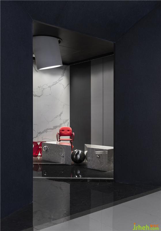 簡(jiǎn)單幾何形的嵌套,在收納、吐露后暗示了空間所具有的錯(cuò)落層次?;パa(bǔ)形之間的球體,穿插著“存在”的難以捕捉。石與金屬、棱角與圓潤(rùn)、剛與柔,對(duì)比之下總能強(qiáng)調(diào)各自對(duì)人的感覺(jué)啟發(fā)。裝修公司